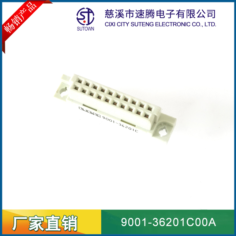 品名:歐式插座連接器型號(hào):9001-36201C00A 規(guī)格:220直孔 20pin屬性:直孔母座 180°間距:2.54間距